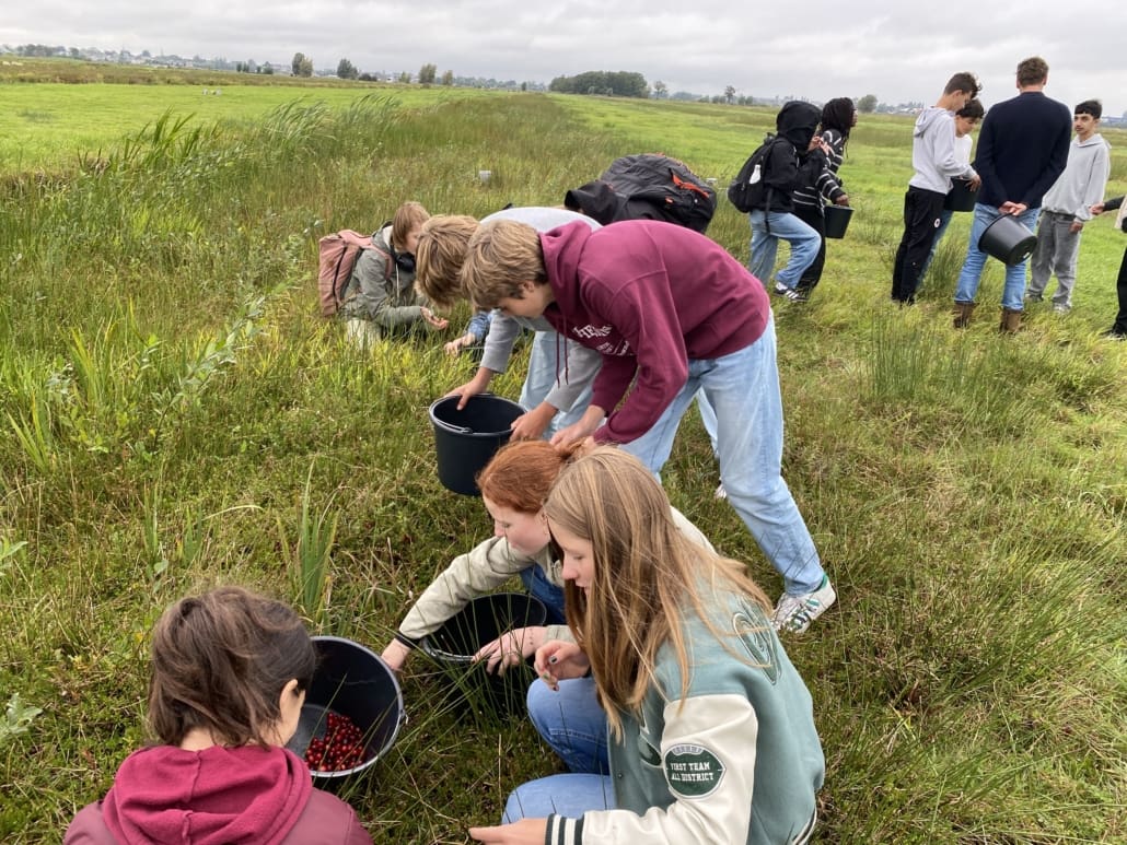 Een deel van vwo 3 ging naar het Abraham Kroesgemaal in de Zuidplaspolder, waar zij uitleg kregen van Neeldert van Laar van het Hoogheemraadschap Schieland en de Krimpenerwaard over de werking van het gemaal en de opdracht. Daarna beantwoordde buurtbewoonster Gerdien Tober (oud-Hoogheemraad) vragen over het wonen op het diepste punt van Europa. Het tweede deel van de excursie was een bezoek aan Matthijs Crouwers van de Cranberry Company. De leerlingen kregen in drassige velden uitleg over het kweken van cranberry’s, en zij hielpen een halfuurtje mee met het plukken van de oogst.